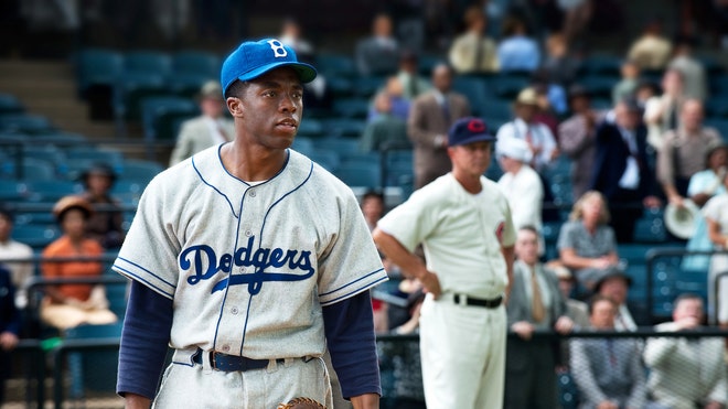 Harrison Ford stars as former Brooklyn Dodgers General Manager Branch Rickey in the film, "42," which details Robinson's Rookie of the Year season in 1947 while combating unabashed racism on and off the diamond.